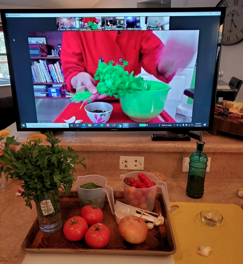 And I LOVE doing Zoom classes. We are each in our own kitchens cooking. I lead you thru the recipes step by step, cooking along with you, and demonstrating each task.