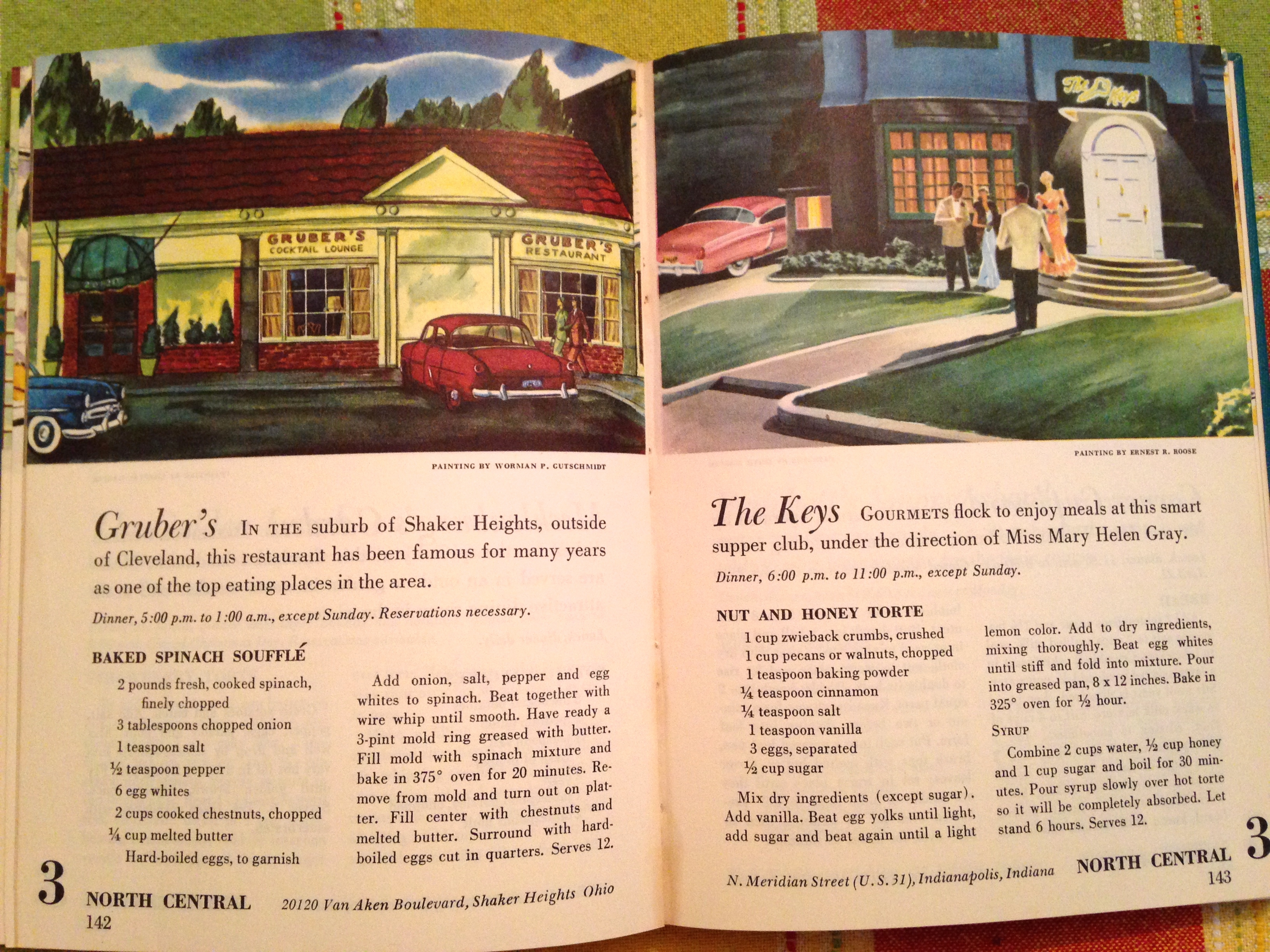 Another couple of favs were put out by the Ford Motor company in 1954 and 1956: The Ford Treasury of Favorite Recipes from Favorite Eating Places (2 volumes). Each book is a collection of favorite recipes from restaurants all over the USA. (They only measure 5.5 inches by 7.) With each restaurant they include a wonderful illustration. A different style for each entry. The books are divided by parts of the country: Northeast, Southeast, Northwest, etc. It’s fun to find out if these restaurants still exist. I imagine it was Ford Motor Company’s way to get people on the road!