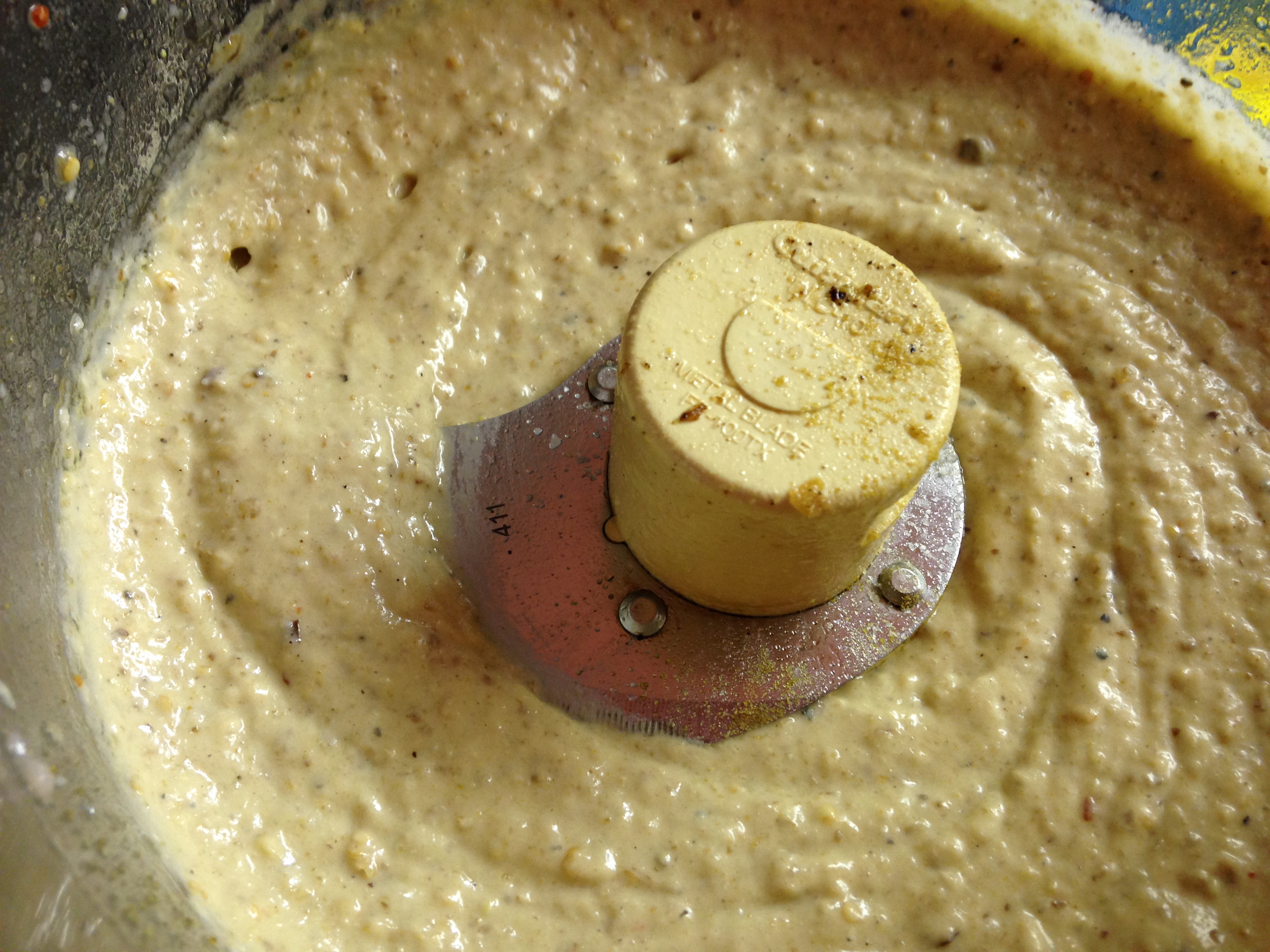 Peel the eggplant in strips, so there’s still some skin. Slice thinly into large slices (so you can roll them up). Season the flour with salt and pepper. Heat a few tablespoons of olive oil in large frying pan. Dredge eggplant slices in flour and shake off excess. Fry eggplant until golden on each side and slices are softened. Drain on paper towels.