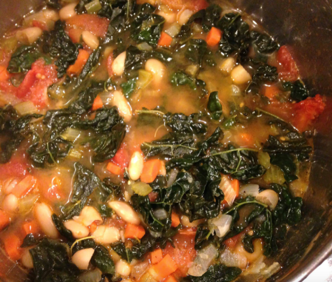 Place the almonds and half of the garlic in the bowl of a mortar and pestle. Pound and press the almonds and garlic, breaking it down to small pieces and pulpy. As you work, add basil leaves a little at a time, pounding into the mixture. You want to get it finely mashed but small chunks are okay. Drizzle a little olive oil. Add the rest of the garlic and basil leaves, pound until broken down fine. (Alternatively, use a food processor. Don’t over-process…break it down so that you can still see tiny pieces of almond.)